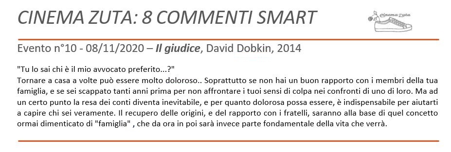 2) (Il giudice) "Tu lo sai chi è il mio avvocato preferito...?" Tornare a casa a volte può essere molto doloroso.. Soprattutto se non hai un buon rapporto con i membri della tua famiglia, e se sei scappato tanti anni prima per non affrontare i tuoi sensi di colpa nei confronti di uno di loro. Ma ad un certo punto la resa dei conti diventa inevitabile, e per quanto dolorosa possa essere, è indispensabile per aiutarti a capire chi sei veramente. Il recupero delle origini, e del rapporto con i fratelli, saranno alla base di quel concetto ormai dimenticato di "famiglia" , che da ora in poi sarà invece parte fondamentale della vita che verrà.